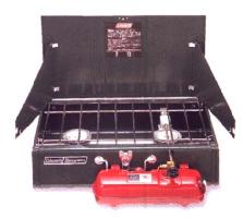 ストーブといっても冬場の暖房用じゃないよ。料理したり、お湯を沸かしたりするコンロのこと。使用する 燃料の違いでガス、ガソリン、灯油などに分類されています。オートキャンプに使うなら、ツーバーナーが 一台あれば特に不自由しないと思います。