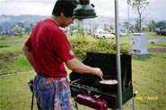 朝食の準備中(夕べのご飯の残りで炒飯)